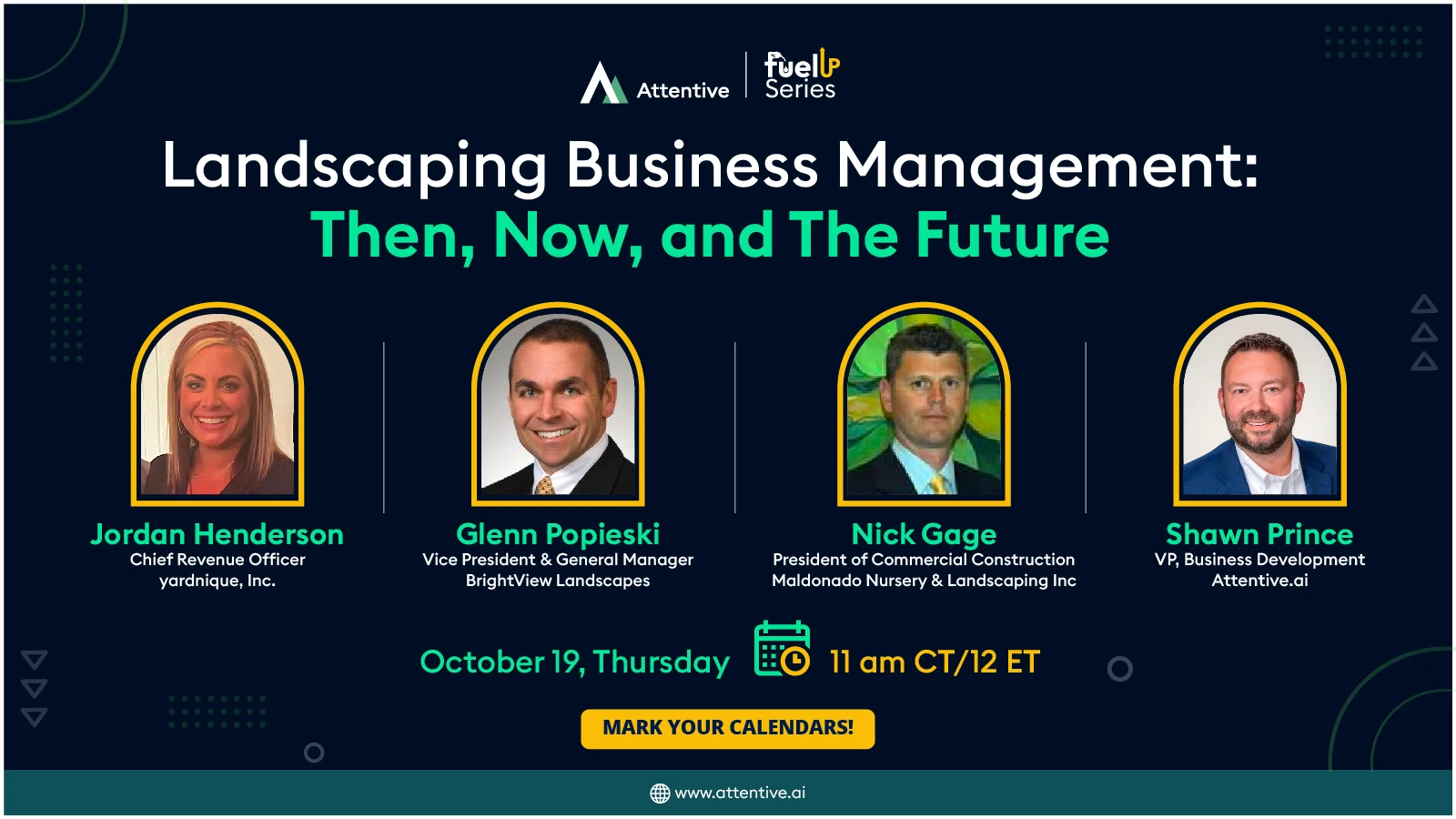 Attentive.ai is ready to host the next episode of their Fuel Up Webinar Series titled "Landscaping Business Management: Then, Now, and The Future.” The webinar will explore the role of tech in reshaping landscape business management over the last two decades, offer insights into what’s coming next, and share practical tips and strategies to ensure your business is future-ready. It’ll take place on Oct. 19 at noon EST/ 11 a.m. CT.