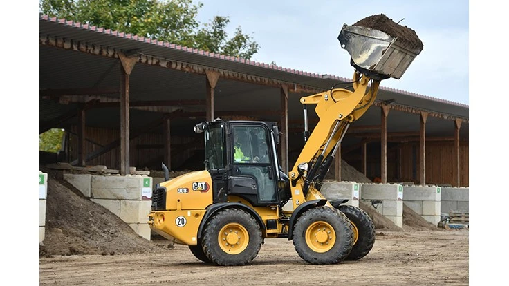 New for this class size, an optional Cat 908 high-lift configuration is available, perfect for customers operating in agricultural and industrial and waste markets. When combined with the reversing fan option, the high-lift configuration offers farmers increased operating efficiency and reliability. Available solid tires and the high lift configuration make the new 908 loader ideal for industrial and waste applications.
