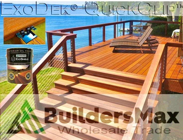 - ExoDek Hidden Clip Fasteners, which allows Ipe, Batu, Cumaru, Tigerwood & Mahogany deck boards to expand and contract naturally