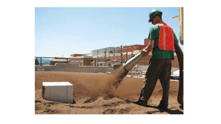 “We have customers that have blown a green roof 30-plus stories high, where before you have to have cranes and wheelbarrows and shut down a street practically,” Severe says. “This has opened up some eyes about how you can do it safer and faster.”