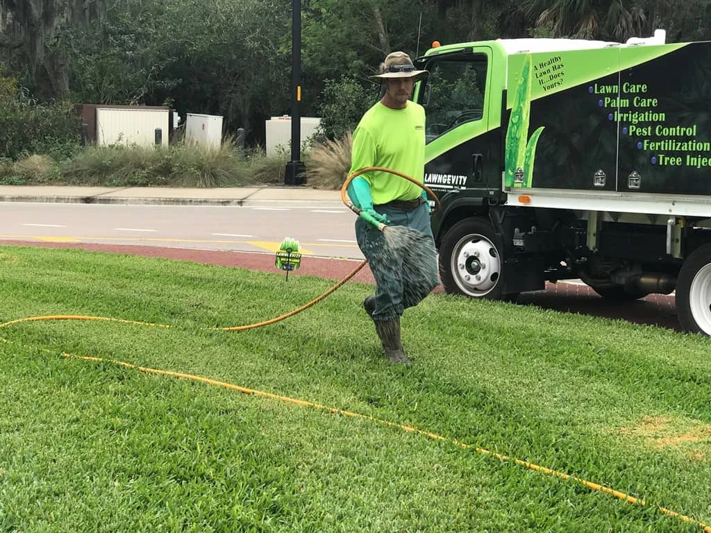 “Every truck is calibrated for the technician,” Falconer says. Lawngevity crews do routine water “bucket tests” with their spray equipment at headquarters to check that they’re releasing around five gallons a minute – which “is about what a person will walk and spread over 1,000 square feet,” Falconer said.