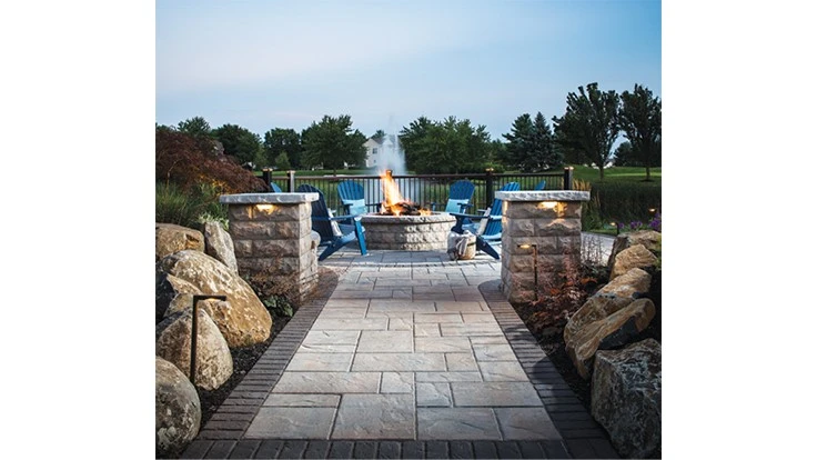 Then there are firepits. SiteOne Hardscapes Category Director Chris Noone says these are often the backbone of an outdoor living space. Contractors can accentuate any of their designs with flames, an outdoor staple.