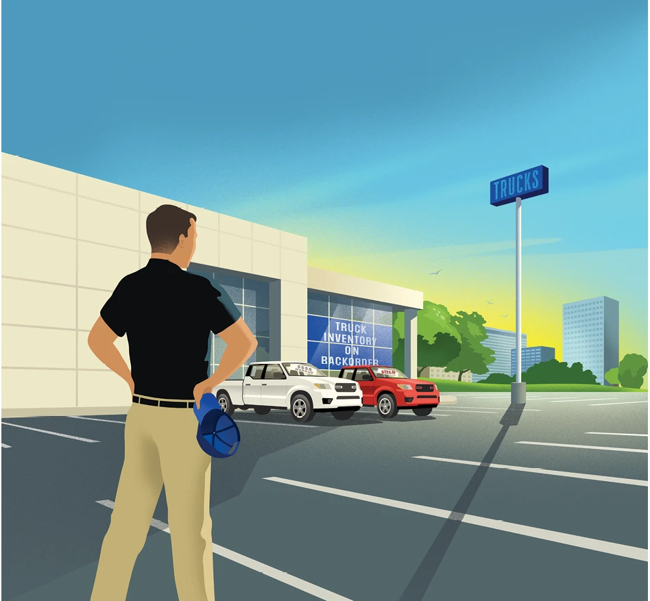 “If I want a new lawn mower or mini loader, it’s months, or some will say even a year out, on a lot of things,” he says. “It’s the same with trucks as well.”