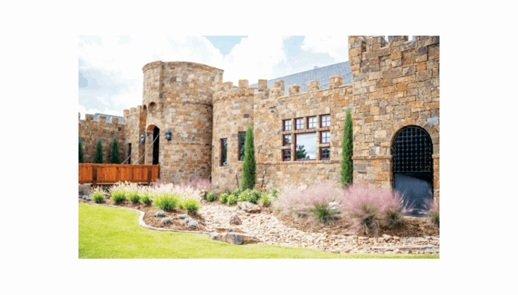 Nelson Landscaping’s client wanted a look that made the property surrounding their castle appear that it had been around for centuries. “Everything in you wants to make a landscape pristine and uniform,” says Andy Nelson, founder/owner of the company, which is based in Oklahoma City, Oklahoma. “So you had to go against your instincts and really create something that worked for this client. Even down to paver pathways and trying to break those up in a way that made them look uneven and somewhat broken down as if they’ve been there for 400 years.”