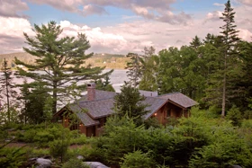 The site is steeply sloped, at the base of Flying Mountain, near Acadia National Park on Mount Desert Island. A bad storm and house construction had left the property raw and destroyed.