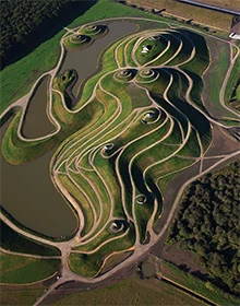 “The lagoons started off as ornamental, but in the end they actually became functional. The lagoons were increased in size by about 25 percent to take away the water and to become drainage lagoons. When it rains on the structure now, you get a lot of runoff into the lagoons,” McGoldrick says. “The combined design and construction experience of InterGeO & Geosynthetics Ltd. provided the client with an excellent final finished sculpture to the contract specification,” says Maria Patricia Guerra Escobar, senior engineer at Geosynthetics Ltd.