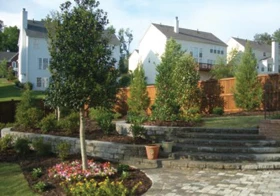 Walls can be made of timbers, cinder block, poured concrete, manufactured precast blocks, natural stone, boulders and even vegetation. Vegetated walls are becoming increasingly popular due to their sustainability and earth-friendly features. With cinder blocks and poured concrete, these walls can be faced with a number of decorative options including brick, flagstone, stacked stone or even stucco. Combining materials can create a unique, winning look that delivers a rustic or formal appearance based on the client's preference.