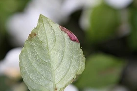What it does. Infected plants can look healthy – it takes up to 14 days for the velvety-white spores to grow big enough on the undersides of leaves to be seen with the naked eye, Warfield says. But by then, it’s too late. Once it arrives, it hits hard, turning once-lush mounds of pink and white flowers into a tangled mess of gnarled stems.