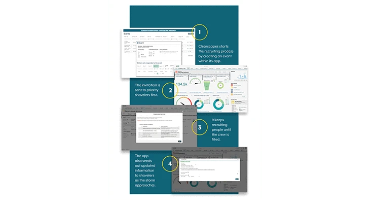 “The platform is called Clearfield,” he says. “And the whole idea is about getting clarity into what’s happening out in the field. We use that for scheduling all of our plowing and all of our shoveling. We built an extension of it just for shoveling because it’s really difficult to get people to shovel these days.”