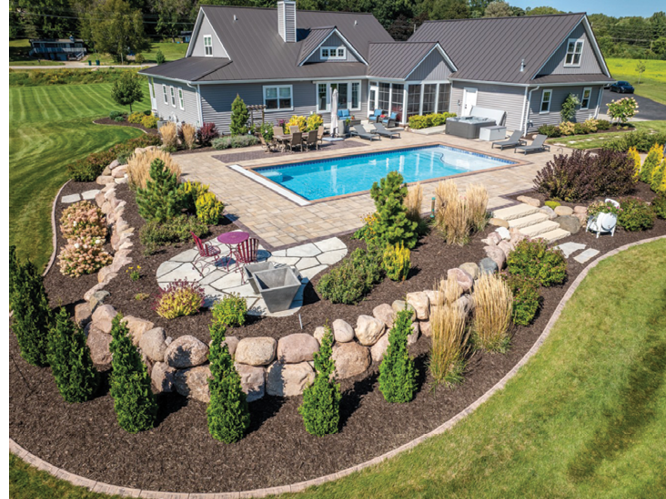 This project involved crafting a country-style residence for a recently retired couple seeking a tranquil haven for themselves and their family. The couple emphasized the need for a luxurious entertaining and gathering place where they could host friends and family in style. To achieve this, the design blended modern and contemporary aesthetics with the natural beauty of the surrounding landscape. The result was a fusion of clean lines, sophisticated materials and organic textures. Van Zeeland Nursery & Landscape located in Appleton, Wis., incorporated a diverse array of plant life — including vibrant shrubs, stately evergreens, delicate perennials and graceful ornamental grasses — to introduce depth and visual interest throughout the property.