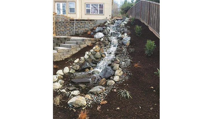 Potential problems can be eliminated when the contractor uses a consistent system and process for installing water features, Boring says. Part of that includes making sure the water feature has the correct pump size, which is based on how much water the water feature will pump through the filter, Krause says. Non-sufficient filtering can result in organic material buildup, which nitrifies the pond, reduces oxygen content and creates an environment for “bad bacteria.”