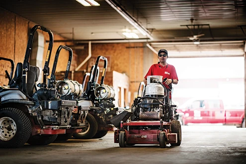 Like Barnes, Inc., Robson Landscaping advertises its propane use and reducing its carbon mower tire tracks to customers. “It also burns cleaner, so our oil stays cleaner longer, and we are seeing upward of 3,500 to 4,000 hours on some of our units,” Robson says. “Our trucks spend less time at the fuel station and have nothing to unload into the parking lots there now. We can track gallons of fuel used for our trucks easier and the emissions inside the enclosed trailers and shop are much less, making a healthier working environment for our workers.”