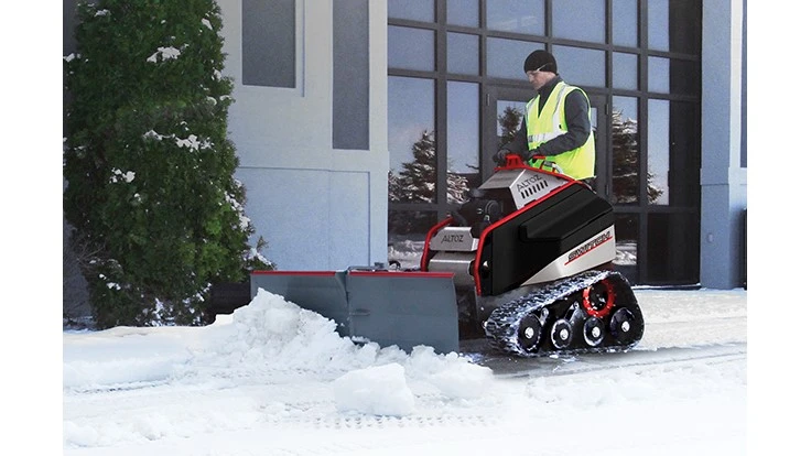 GREENBUSH, Minn. —Altoz is announcing the release of the Altoz Switch stand-on tracked compact tool carrier. The all-new Altoz Switch provides the benefits of tracks along with the versatility of multiple attachments for multi-season use. Multiple tasks can be performed using the currently available attachment options: three mower decks (all-terrain, brush and finish), angle broom, v-blade, straight blade, snow blower and brine de-icing system. The Switch’s ability to change attachments quickly and easily without tools makes it a cost-effective solution.