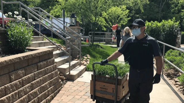 Mike Knisely, district manager at Ambius, led his team in Knoxville, Tennessee, to give back in their community to the staff at a senior care facility. The team provided ponytail palms and food for the staff as a thank you for their hard work and effort during this pandemic.