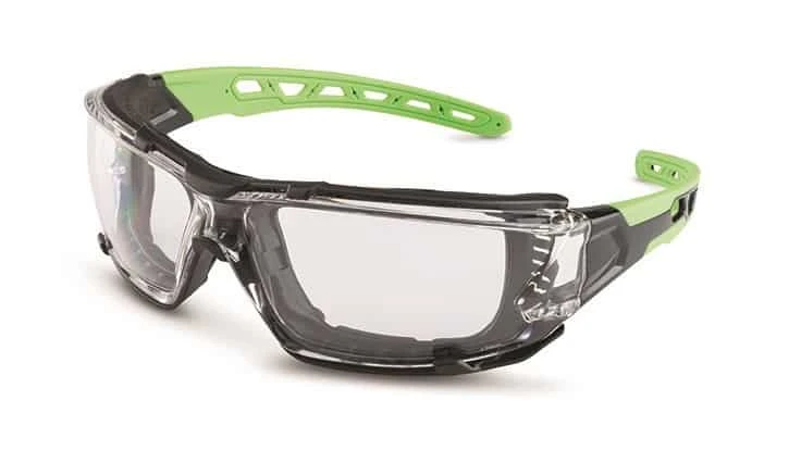 The design features a wraparound lens for an unobstructed field of vision. Bend-but-don’t-break flexible thermoplastic rubber (TPR) grass-green temples provide hypoallergenic, non-slip comfort, adapting to any facial profile without distorting optics. Grasshopper is also fully dielectric (no metal anywhere) for an extra measure of safety.