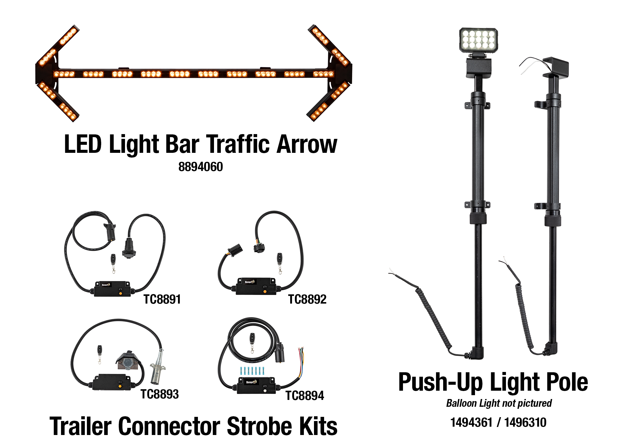 Buyers Products, a manufacturer of work truck equipment, has added LED Directional Arrow and a “plug-and-play” kit that strobes trailer lights.