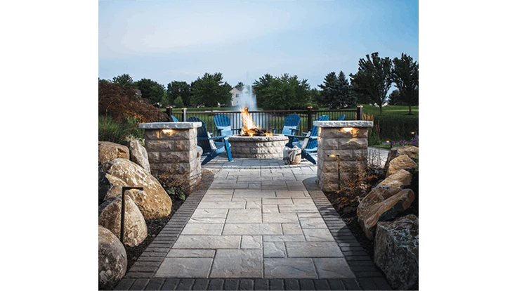 Then there are firepits. SiteOne Hardscapes Category Director Chris Noone says these are often the backbone of an outdoor living space. Contractors can accentuate any of their designs with flames, an outdoor staple.