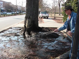 "We are assessing the extent of the damage and proceeding as if we have a chance to save the trees," said Gary Keever, an Auburn University professor of horticulture and a member of Auburn's Tree Preservation Committee. "We are also focused on protecting the other trees and shrubs in Samford Park. At this level the impact could be much greater than just the oaks on the corner, as Spike moves through the soil to a wide area." Additional tests are being completed to determine the movement and extent of the area affected, Keever said.