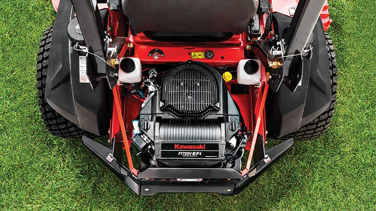• Kawasaki’s FT730V-EFI uses an integrated e-governor that immediately adjusts to engine power-to-load for maximum cutting power at higher speeds, cleaner mowing when units are used in heavy turf and it minimizes the need for re-cuts.
