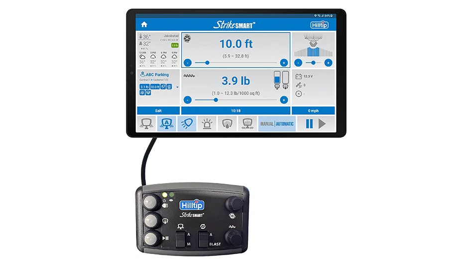 Hilltip has updated its innovative HTrack system with the new StrikeSmart PLUS controller, available for the company’s line of winter maintenance spreaders and sprayers. Featuring an 8.7-inch touchscreen, the new control system monitors real-time weather forecasts and surface conditions and then recommends the ideal materials and spread rates for effective ice management. It also automates equipment settings to ensure the proper material rates are applied. As a result, this exclusive technology allows winter maintenance professionals to control ice with an unprecedented level of confidence, efficiency and precision.