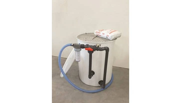 The blending tank and lid are constructed out of polyethylene, which makes the brine blender rust and corrosion free. A liquid level indicator is integrated into the blending tank and a sharp-edged spike strip is included on the top grate to simplify opening bags of salt. Also, a salinity meter is provided for accurate brine testing.