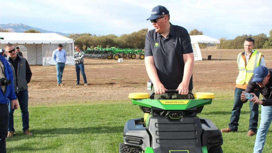 Before their official debut at CES, Lawn & Landscape and other media outlets received a firsthand look at the autonomous machines earlier this fall in Gilroy, California. This included an autonomous, battery electric commercial mower, and 460 p-tier autonomous articulated dump truck (ADT) for quarry operations, an autonomous 5ML orchard tractor for air blast spraying and an autonomous 9RX tractor for large-scale agriculture.