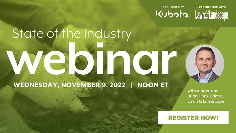 During a free webinar on Wednesday, Nov. 9, Editor Brian Horn will moderate a discussion with green industry professionals about what has happened in the industry over the past 12 months and what to expect in 2023. Topics will include: market trends, supply chain, inflation, labor and more.