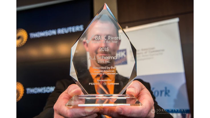 NEW YORK – The German American Chambers of Commerce (GACC) presented the GACC Award for Trainee of the Year to A.J. Scherman of STIHL. The GACC Trainee Award recognizes outstanding individuals working for German subsidiaries who have demonstrated excellence in their workforce training programs.