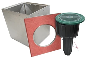 Underhill International has developed a Turf Box to house the company’s long-throw Mirage-125 sprinklers, typically installed around the perimeter of synthetic sports fields.