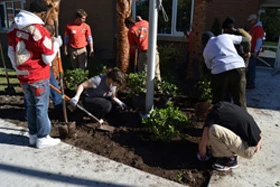 The East Central Florida district and Northeast Florida district teamed up with Dragon Flowers, the Florida School for the Deaf and the Blind’s agribusiness program, to enhance the landscape in five areas throughout the school.