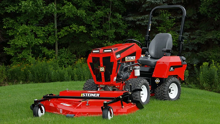 The Steiner 450 tractor is completely re-engineered to provide even more power, versatility and dependability to users in residential, farm, golf, municipal, landscape and sports turf industries. The tractor has an articulating frame, giving it a tight turning radius of only 43.5 inches. The frame also oscillates, keeping the operator upright and in control even on uneven terrains.