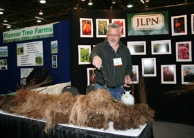 Caption: Ken Free, sales manager for Salem, Ore.-based JLPN, waters seedlings at CENTS 2011.