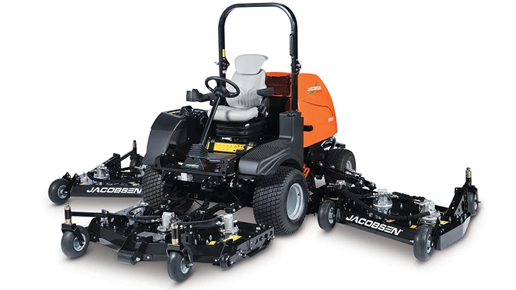 “It combines the maneuverability and agility of a smaller mower with a massively productive 14-foot cutting width, allowing turf managers of sports fields, parks and green spaces, golf courses, schools, airports and commercial grounds to mow up to 13 acres an hour,” said Ben Bruce, product manager for Jacobsen.