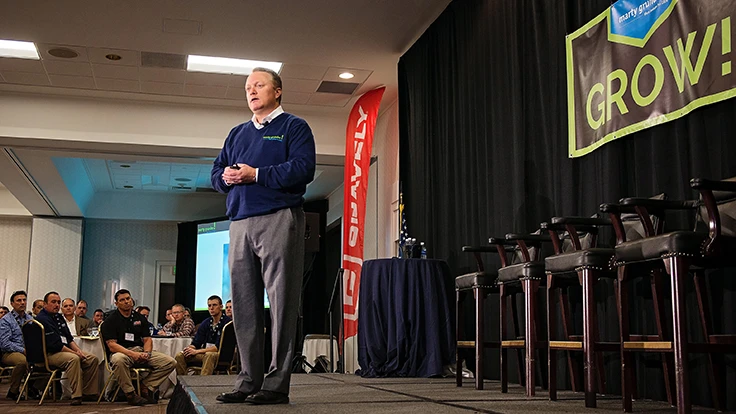 For the presentations and panel discussions, Grunder was joined on stage by some of the green industry’s biggest names: Scott Jamieson, vice president, Bartlett Tree Experts; Frank Mariani, CEO, Mariani Landscape; Jim McCutcheon, CEO, HighGrove Partners; Todd Pugh, founder and CEO, Enviroscapes; and Mike Rorie, president, GroundSystems.