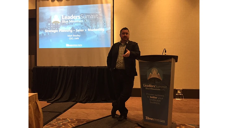 Mark Bradley is the chief executive officer of TBG Landscape, a design/build company in Ontario that last year posted revenue of $28.7 million. He’s also the CEO of Landscape Management Network, the business software company he started based on the technology he created at TBG. He outlined for the attendees how he sets up strategic plans for his landscape company and software firm.