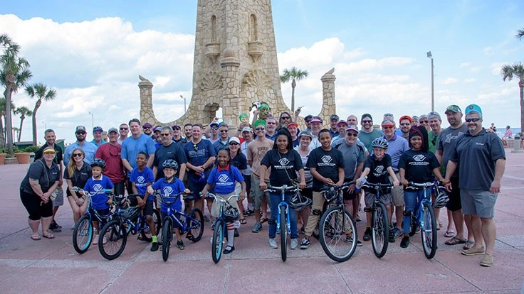 Essay contest winners from the Boys & Girls Club of Volusia/Flagler Counties arrived to receive the finished bikes.