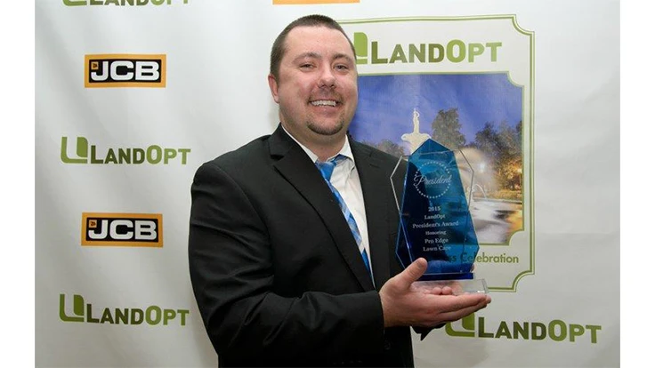 PITTSBURGH, Pa. – Pro Edge Lawn Care out of Holland, Ohio was recognized with the President’s Award during LandOpt’s annual Principals Meeting and Success Celebration in Savannah, Georgia this February.