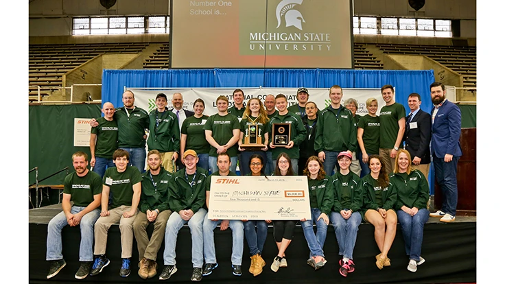Michigan State University took first place in the overall competitive events, followed by Brigham Young University – Idaho in second place, and Cuyahoga Community College in third. Michigan State University took home $5,000 from STIHL for placing first.