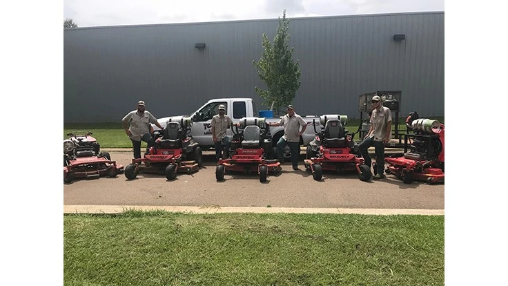 SWAPPING OUT. Dudley says he officially made the switch in June 2010. A salesperson at a local propane distributor contacted him on a cold call and Dudley agreed to look at it. He had several questions about it when they first started talking, like what mechanics and performance would be affected if mowers that have no fuel in them – just a tank of propane sitting behind the operator – might cause problems with the mower itself. The dealer also let him use their mower of the same make and model Dudley has, and after five minutes of demo use, he was sold.