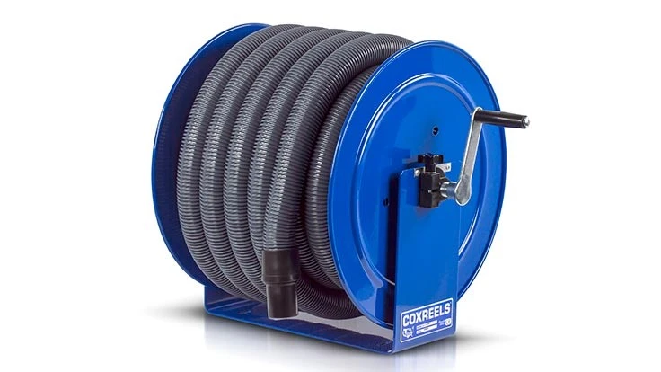 The reels with hose are offered in two hose lengths but the reel itself remains unchanged. The hose lengths correspond to the HP rating of the vacuum used with the reel. For vacuums with 5 HP or less ratings, the 35’ model is recommended. For vacuums with greater than 5 HP ratings, the 50’ model is recommended. The hose has a super flexible “crush-proof” smooth interior hose suitable for commercial cleaning applications and is equipped with standard 1.5” threaded hose cuffs.