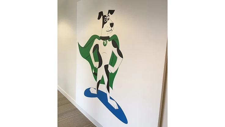Above: Lucky the TurfMutt makes an appearance at OPEI's new headquarters.