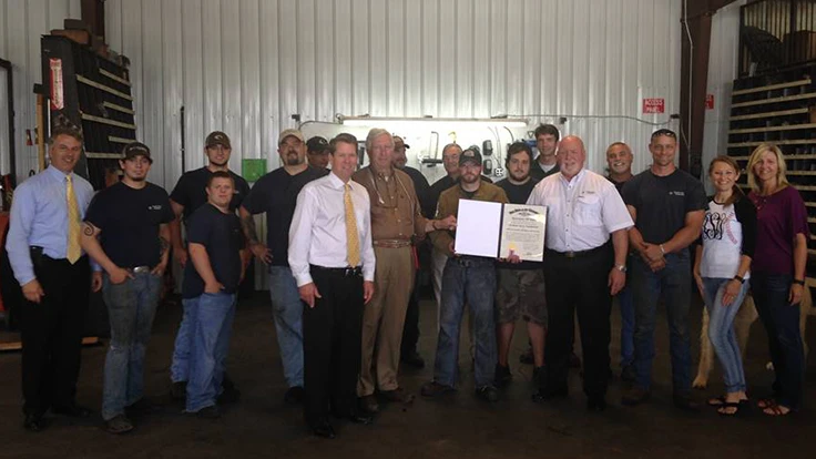 DOUGLASVILLE, Ga. – Georgia Secretary of State Brian Kemp has recognized Graham Spray Equipment for its contribution to job creation and the positive economic impact it has within and beyond the state. Kemp, accompanied by representatives of the Georgia Agribusiness Council, presented the company with an Outstanding Georgia Business certificate during a tour of Graham’s facilities last month.