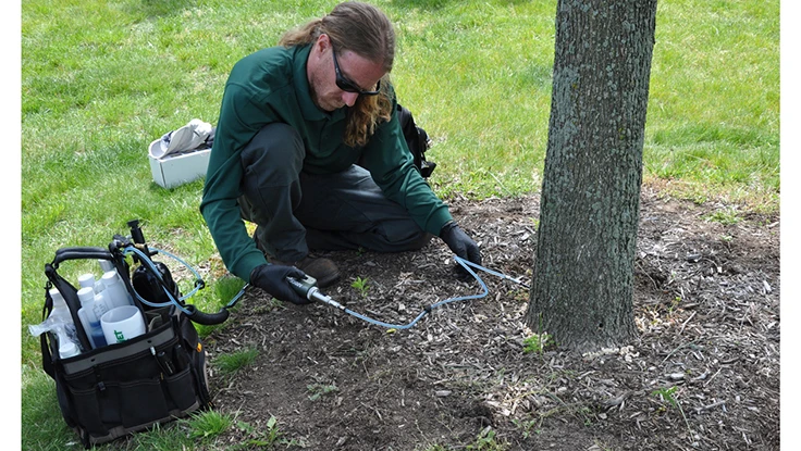 NEW ROCHELLE, N.Y. – Almstead Tree & Shrub Care Company partnered with Arborjet to donate treatment for forty-one ash trees at Liberty State Park in Jersey City, New Jersey, against Emerald Ash Borer (EAB), an invasive tree pest that is currently threatening ash trees in our region. The event and demonstration took place on May 19 at the Grove of Remembrance Living Memorial area, which is dedicated to New Jersey’s victims of the September 11, 2001 attacks. Arborjet provided the treatments at no cost, while Almstead donated the labor and expertise to inject the trees.