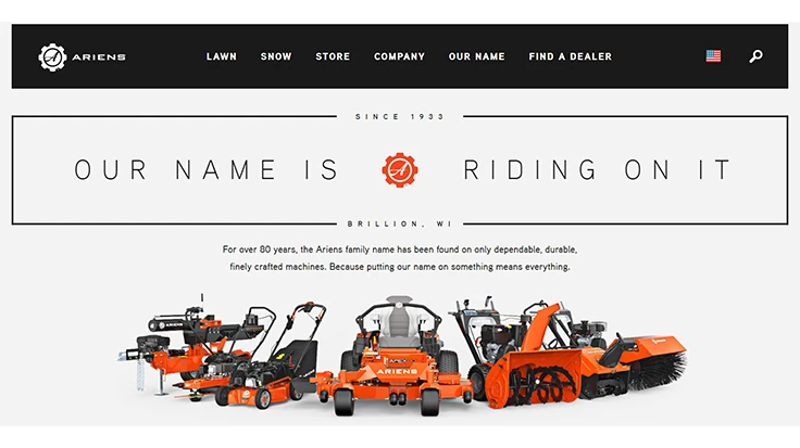 The new website prominently features the company’s history to provide insight on the 83-year-old brand. It includes content on the current Ariens museum, along with a detailed timeline of product and company history. Also included are stories about employees currently working for Ariens in a variety of capacities to highlight the company’s American manufacturing roots. Ariens’ new commercial, “Putting your name on something,” is also featured under the “Our name” section, which is dedicated to the company’s current national advertising campaign.