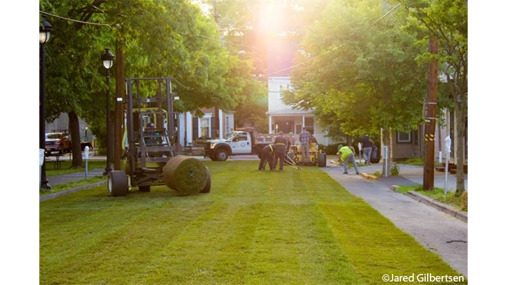 STROUDSBURG, Pa. – A park appeared overnight in downtown Stroudsburg, Pennsylvania, covering what was usually a busy street. Volunteers from Strauser Nature’s Helpers and Coombs Sod Farm of Elmer, New Jersey, began laying sod in the early hours of May 27 to create the first Green Street Challenge in the United States, turning a street into a park for the day. The event, organized by Come Alive Outside in partnership with Strauser Nature’s Helpers and Coombs Sod Farm, encourages people to get back outside with an emphasis on playing unplugged, enjoying nature, and living a healthier lifestyle.