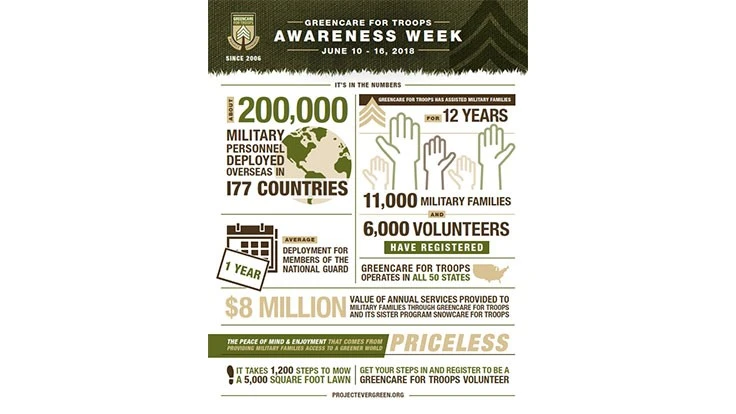 Cleveland, Ohio — To raise awareness of the ongoing need for basic lawn care and landscape services for families of deployed military personnel and post-9/11 veterans with service-connected disabilities, Project EverGreen recognizes June 10-16 2018 as GreenCare for Troops Awareness Week.