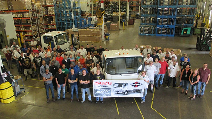 ANAHEIM, Calif.—Isuzu Commercial Truck of America, announced that the 30,000 gasoline-powered Isuzu N-Series truck has been produced at the Spartan Motors facility in Charlotte, Michigan. The truck rolled off the line on Friday, June 10.