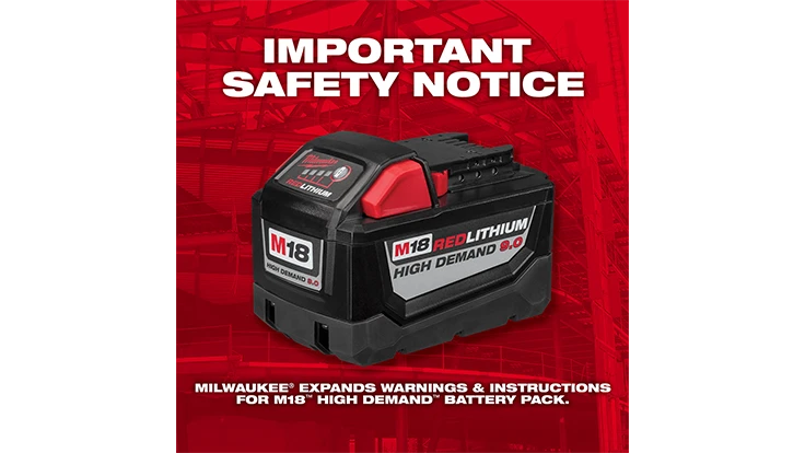 Because Milwaukee Tool is committed to continuously improving safety, quality and customer satisfaction for the professional trades, the company is proactively taking immediate action, issuing expanded warnings and instructions for the M18 High Demand 9.0 battery pack.