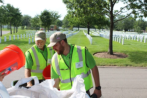 During Renewal & Remembrance, volunteers tended to 200-plus acres of the cemetery’s 624 acres. Volunteers mulched, pruned, aerated, and applied lime and gypsum to the grounds. Approximately 80 tons of lime will be applied to 182 acres of turf by the end of the day.