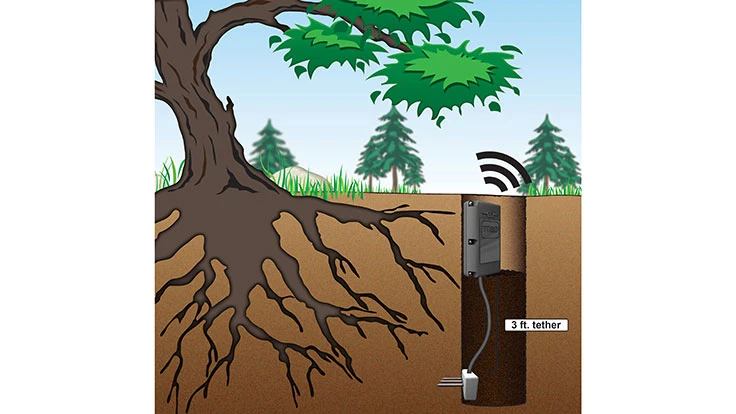 The Pro Series Soil Sensor can be used with Toro’s Sentinel Central Irrigation control systems to monitor moisture level trends in the soil. The sensor transmits real-time moisture data every five minutes. The information allows the customers to automate or manually adjust irrigation. A probe design includes a tether that allows moisture measurements to be taken just below grade, to up to three and a half feet below the surface.